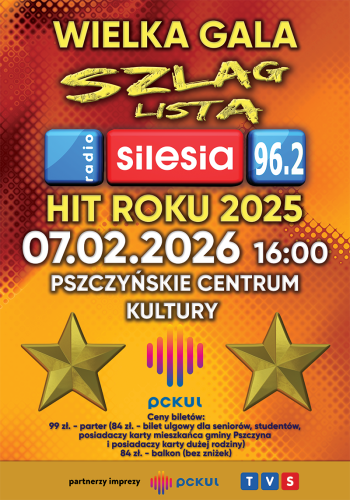 7 lutego 2026r. w PCKulu podczas koncertu na żywo dokonamy wyboru hitu roku Szlag Listy Radia Silesia.